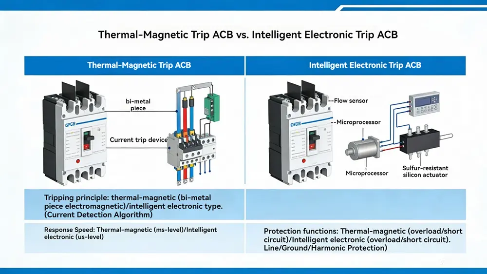 Pemutus Sirkuit Udara minangka piranti perlindungan listrik voltase rendah sing nggunakake hawa minangka media pemadam busur. Iki njamin distribusi daya listrik sing aman kanthi otomatis ngganggu arus kesalahan lan njaga stabilitas sistem. Ing sistem tenaga modern, unit Pemutus Sirkuit Udara penting kanggo nglindhungi peralatan lan njamin kesinambungan operasional.